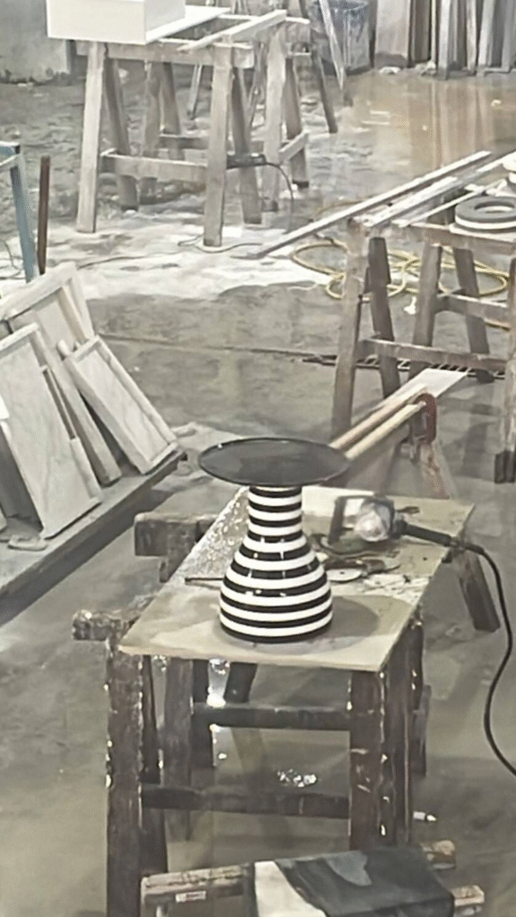 Ao desenvolver a Coleção Fragmentos, minha inspiração veio da busca por dar novo significado ao que seria descartado. Cada peça foi concebida para revelar as texturas e nuances naturais do mármore, sempre em uma paleta de preto e branco que homenageia a essência do material. Esse trabalho une força e delicadeza, características que traduzem minha visão de design e o compromisso com práticas mais conscientes.